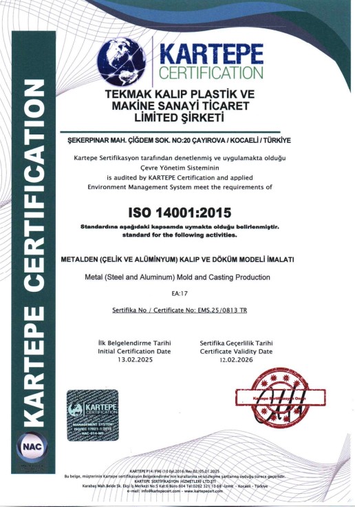 TEKMAK ist ein Unternehmen mit 20 Jahren Erfahrung und Fachwissen in der Herstellung von Formen und der Kunststoffproduktion. Das Produktionsspektrum umfasst Kunststoffformen, Blechformen, Montagervorrichtungen, Kontrollvorrichtungen, Auftragsfertigung und die Herstellung von Kunststoffteilen durch Spritzguss.