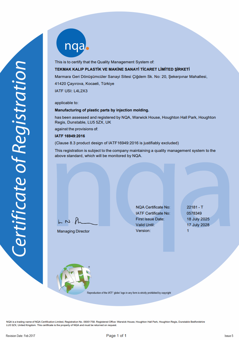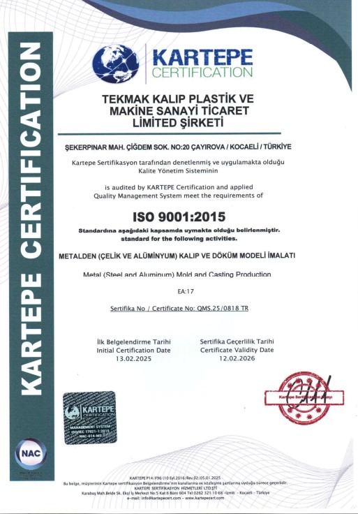 TEKMAK mold is a company that has proven itself in the mold and plastic manufacturing industry with 20 years of experience and expertise. Its production range includes plastic molds, sheet metal molds, assembly fixtures, inspection fixtures, subcontracted part production, and plastic part manufacturing through plastic injection.